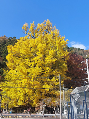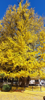 筒賀の大銀杏の葉が散って、黄色いじゅうたんが美しく光っています。